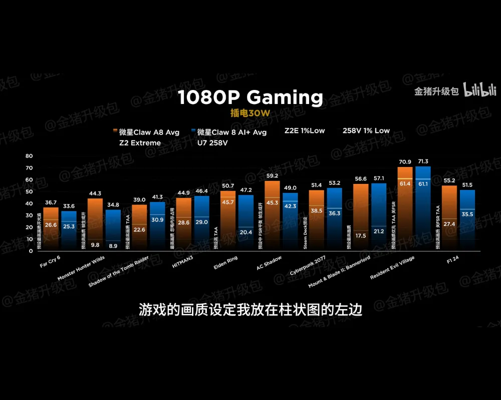 Sin embargo, la balanza se inclina a favor de AMD en otros títulos populares. Juegos como Monster Hunter Wilds, Assassin’s Creed Shadows y Far Cry 6 muestran que el Ryzen Z2 Extreme puede superar en ocasiones al Core Ultra 7 258V por diferencias más notables, llegando a obtener de 3 a 10 FPS adicionales de media en configuraciones comparables.