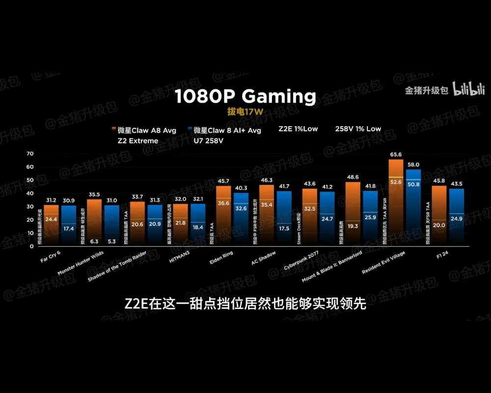 En configuraciones de consumo restringido —por ejemplo, a 17W— el análisis muestra que AMD logra sacar ventaja significativa en rendimiento por vatio. El Ryzen Z2 Extreme no solo sostiene tasas de FPS superiores en la mayoría de juegos a este nivel de energía, sino que además consigue mantener la consola fría y silenciosa, dos factores esenciales para la experiencia en movilidad.