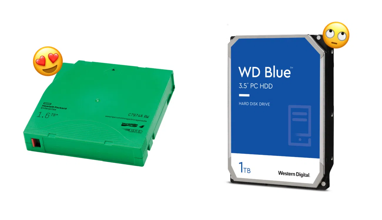 En durabilidad, LTO ofrece una vida útil superior a 30 años si se almacenan los cartuchos a unos 18 °C y 40% de humedad. Frente a ello, un HDD típico tiene una esperanza de vida media de unos 5 años y mayor tasa de fallo. La portabilidad del cartucho, sin partes motorizadas expuestas, lo hace además más robusto en transporte que un disco.